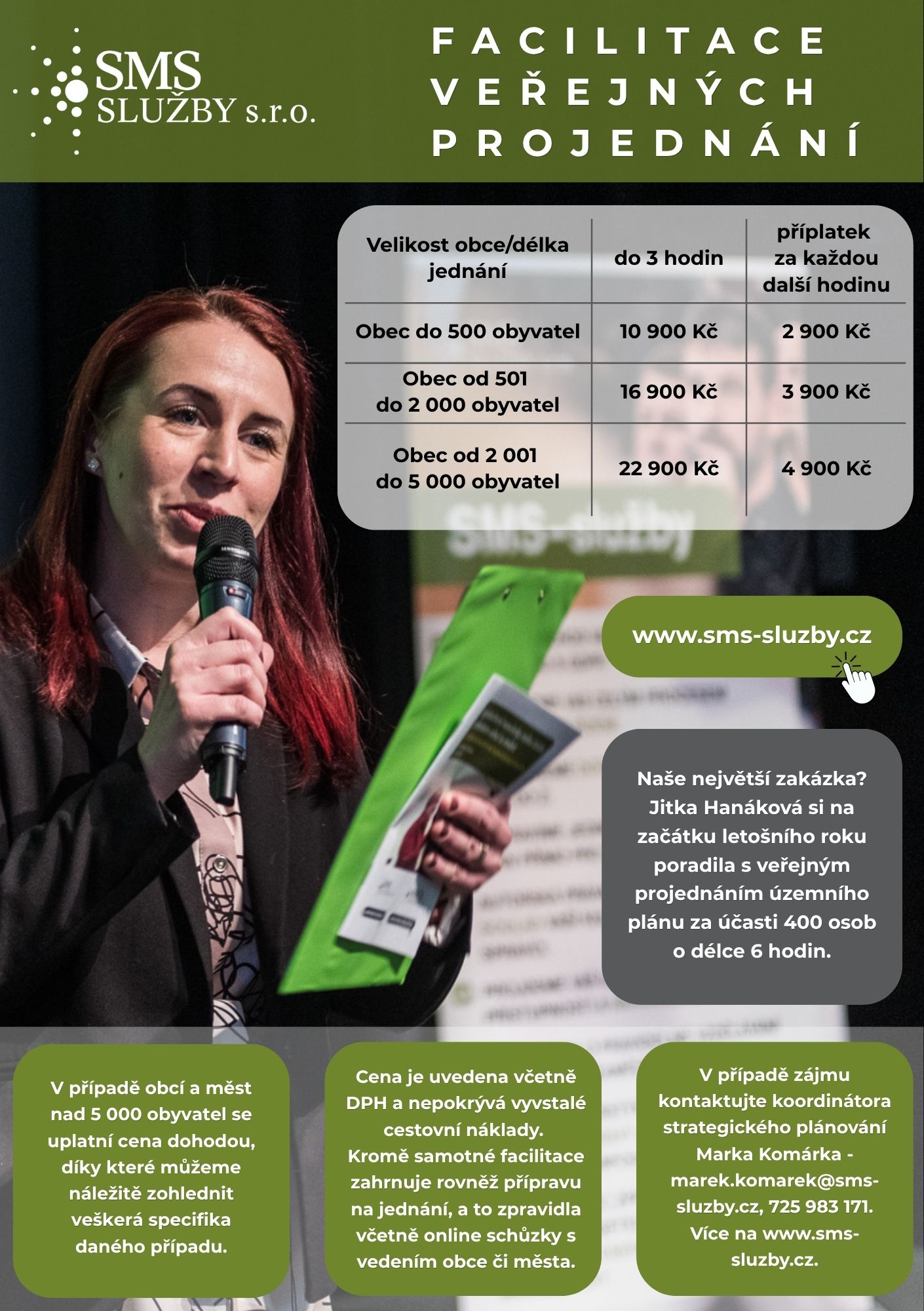Stalo se vám někdy, že jste si nebyli úplně jisti v kramflecích, když jste měli s širokou veřejností projednat nějakou zásadní věc? Nebo jste jen měli pocit, že by Vám pomohlo, kdybyste se mohli soustředit na samotnou debatu, zatímco vedení debaty by si na starosti vzal někdo jiný? A byli byste v takové chvíli rádi za oporu v zádech z řad zkušených starostů nebo moderátorů velkých akcí? Pokud ano, pak u příštích podobných akcí možná využijete oporu, kterou Vám nabízíme v rámci nové služby pod názvem Facilitace veřejných projednání.
